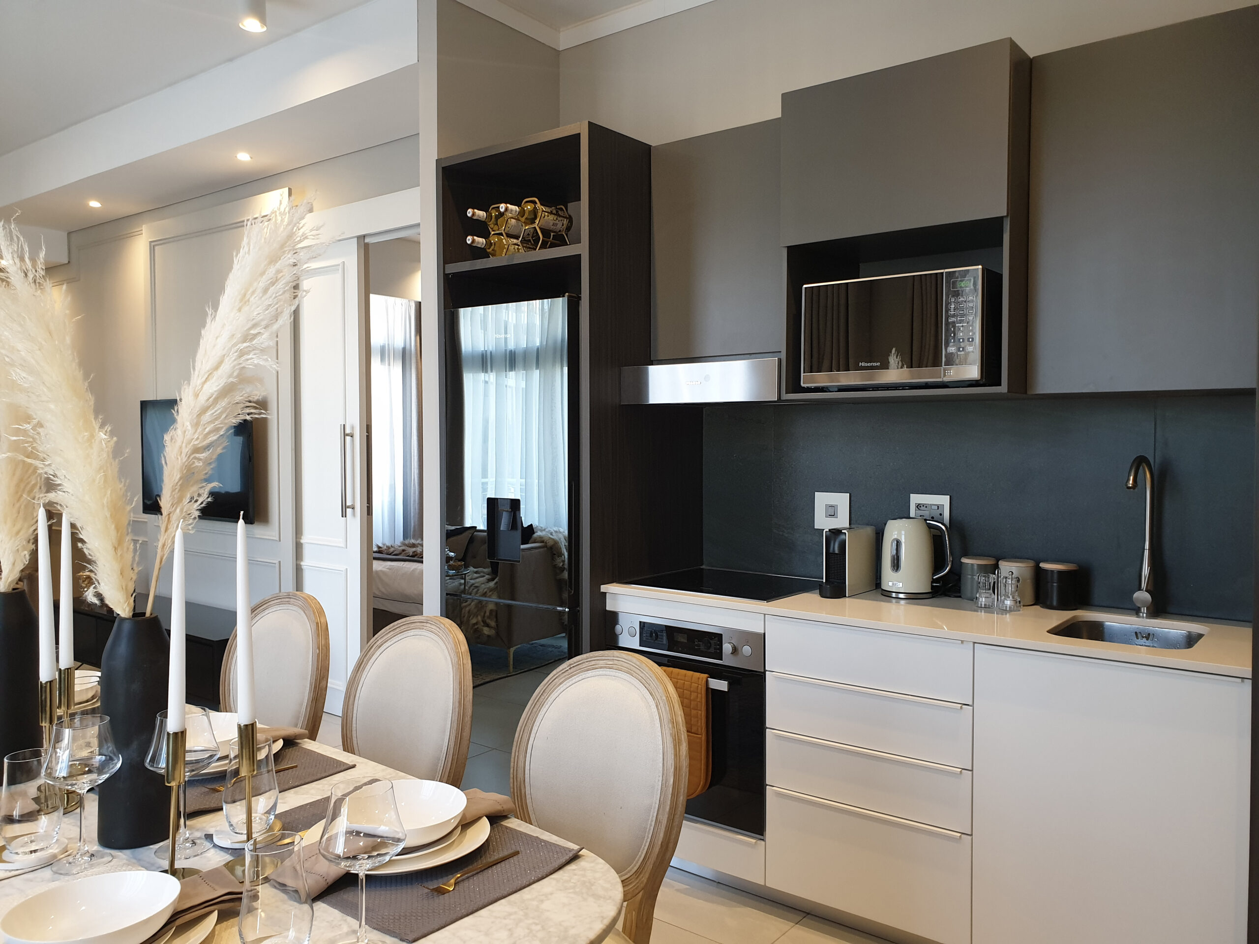 Regal @ Maine is a luxurious 1-bedroom apartment in Menlyn Maine, Pretoria, and was designed with international business travellers in mind. The space exudes elegance and sophistication with a harmonious blend of classical and contemporary design elements.
