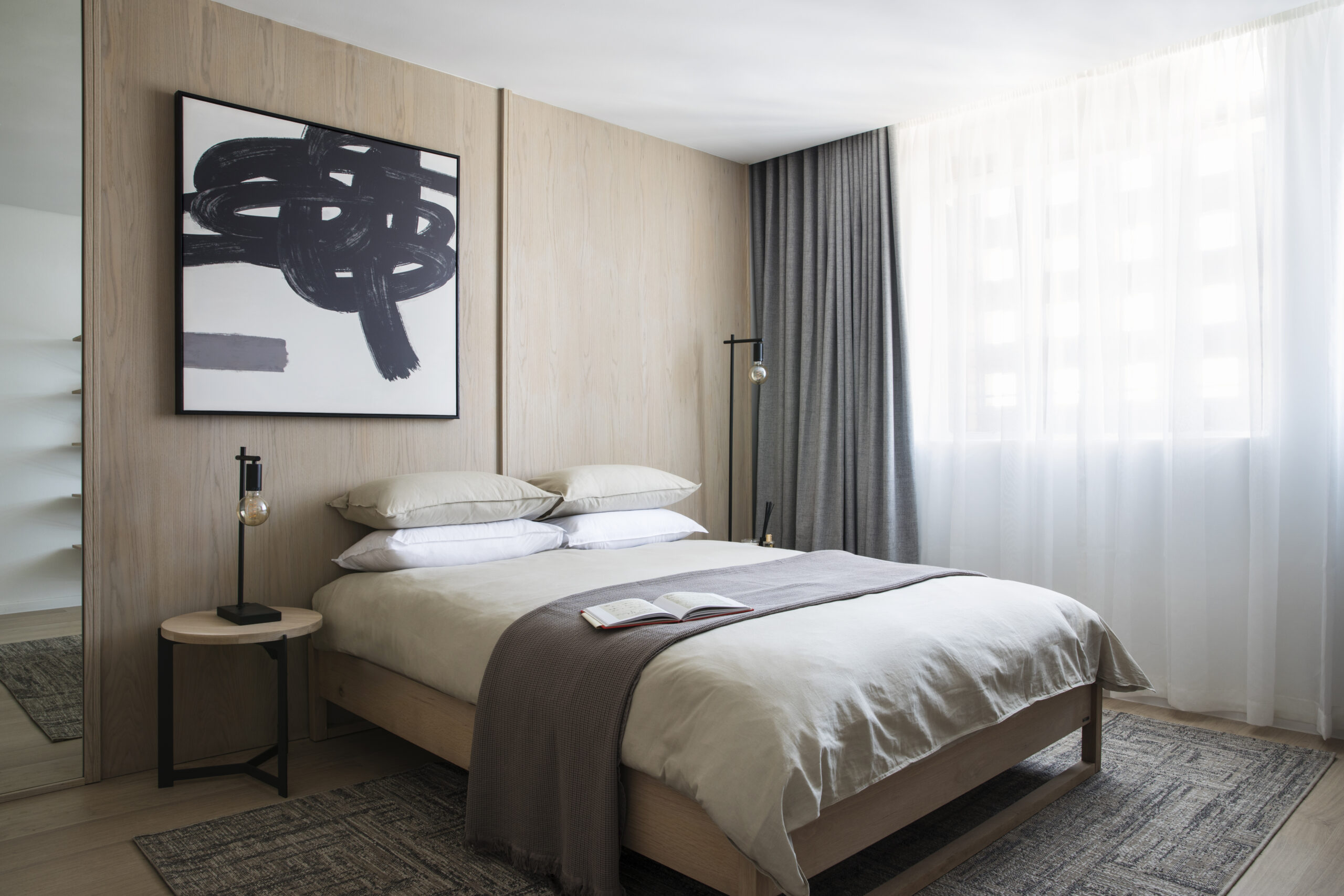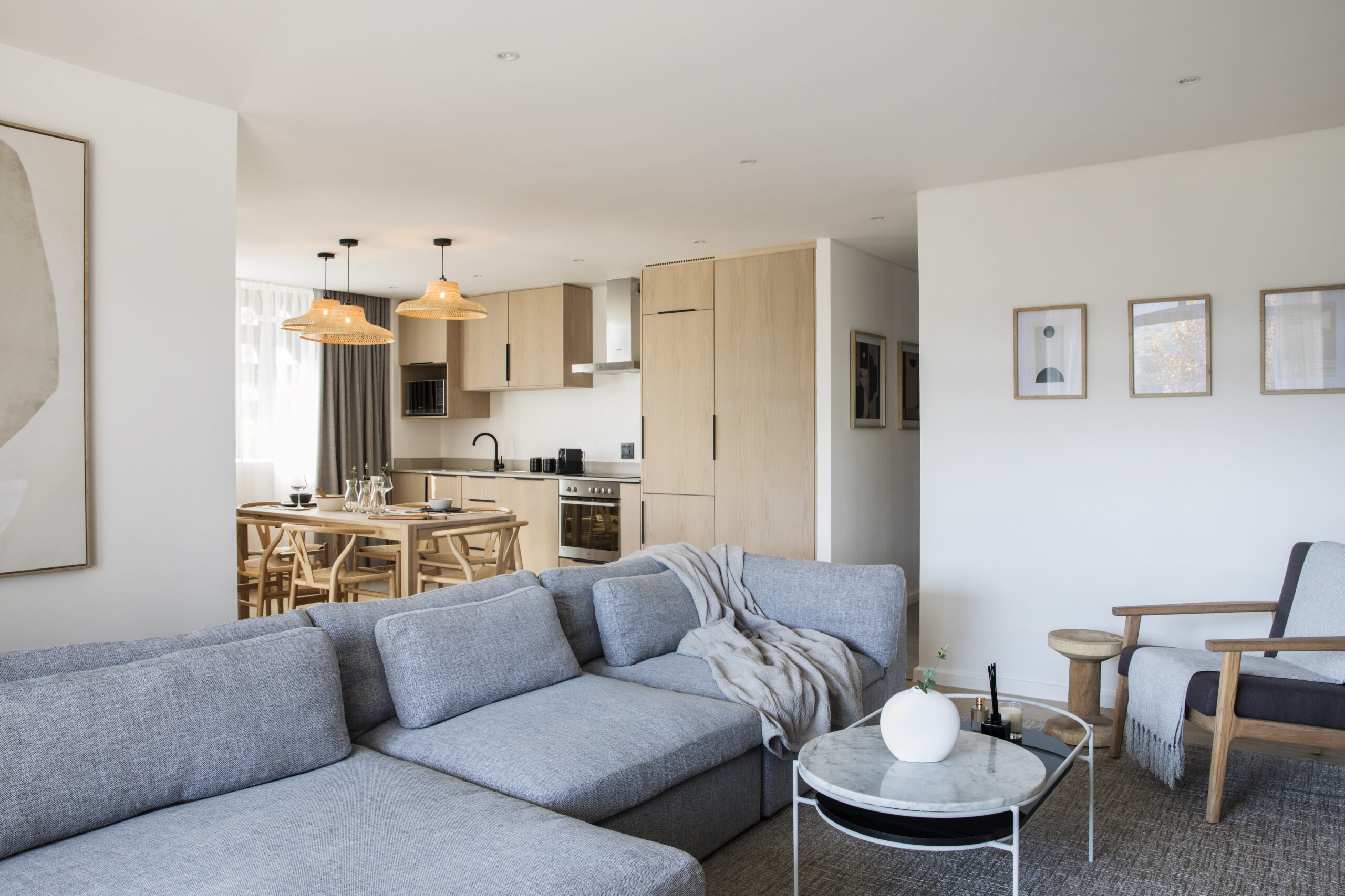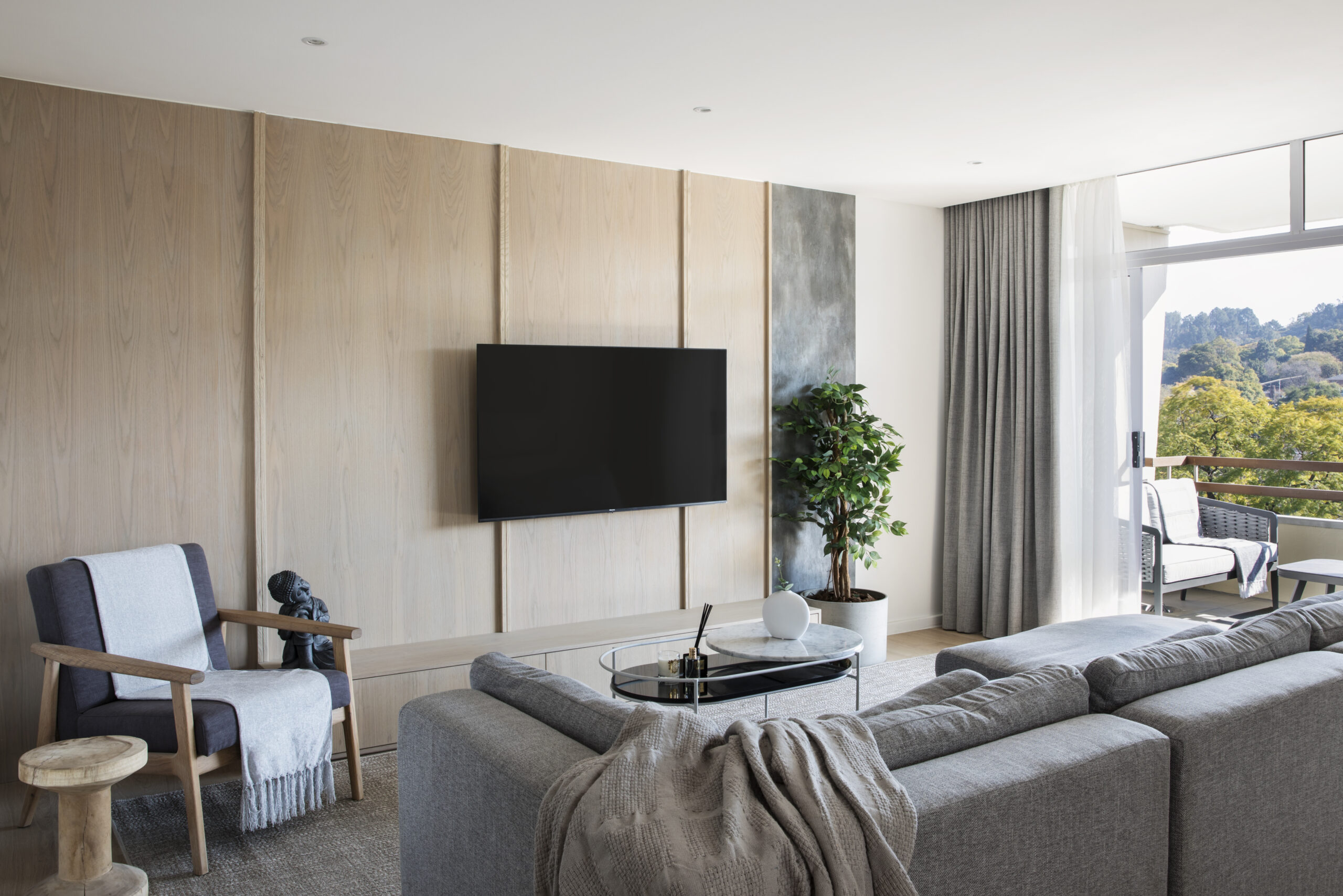 Urban Zen is a beautiful urban apartment located in Pretoria, designed to provide a peaceful oasis away from the hustle and bustle of city life. The concept is a blend of Japandi-style and urban elements, creating a serene space that overlooks the iconic Union Buildings.